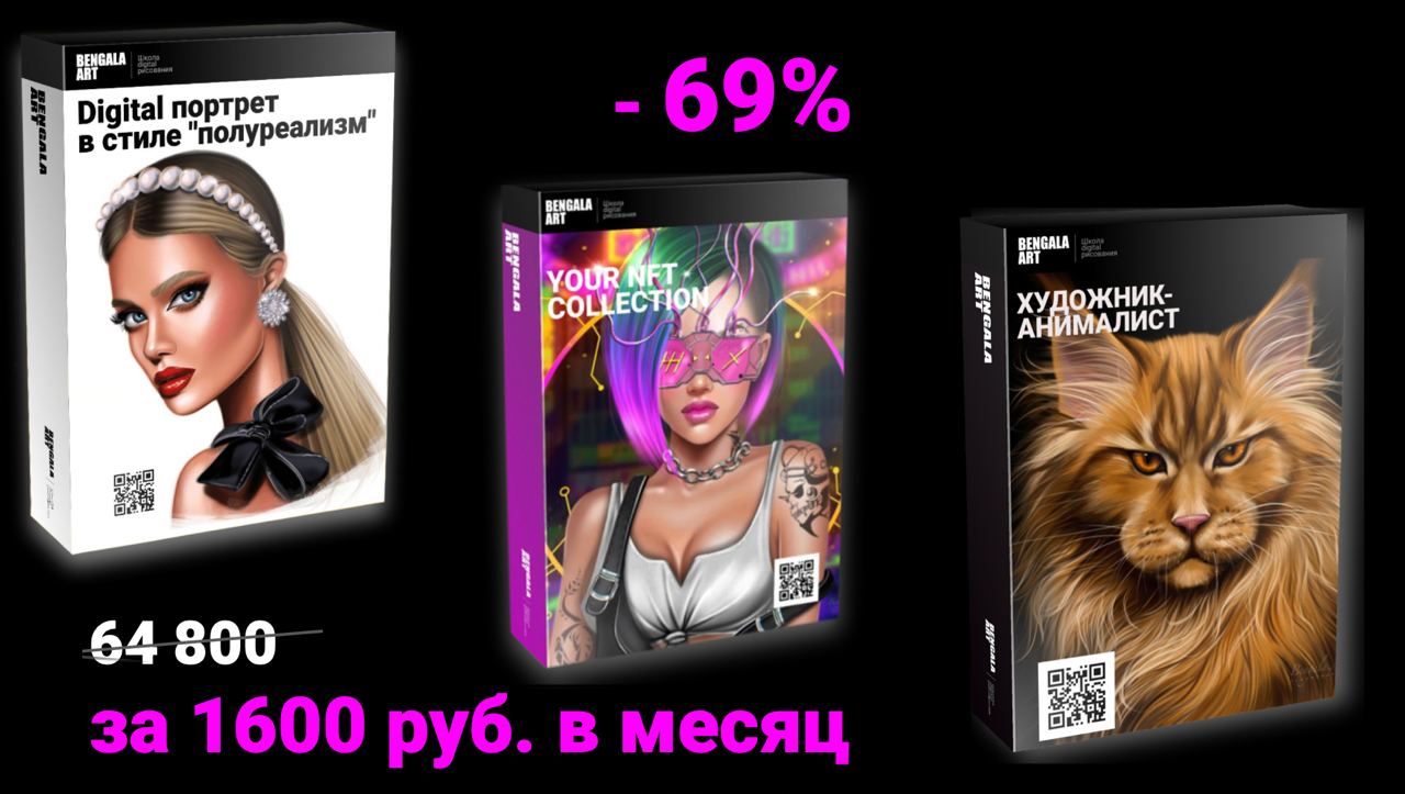Получите доступ сразу к трем топовым курсам школы digital рисования Ирины BengalaArt. Эксклюзивное предложение - тариф КОМБО