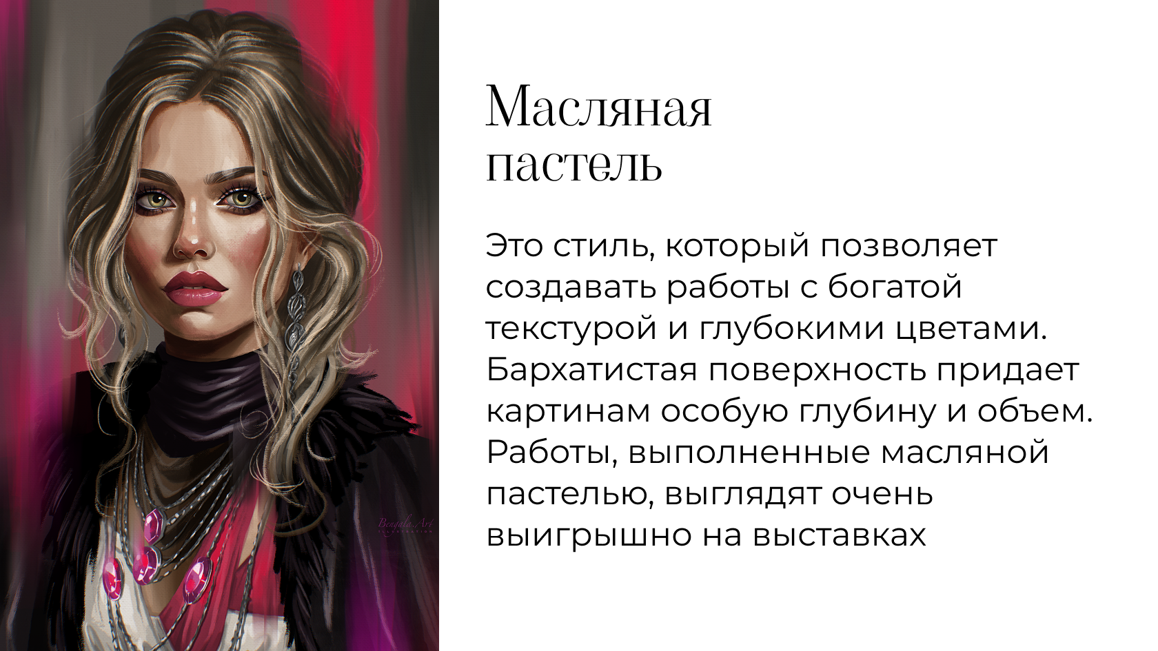- более 15 направлений (животные, фуд иллюстрация, цветы, портреты мужские и женские, одежда, украшения, элементы декора одежды, интерьерные картины и др.)